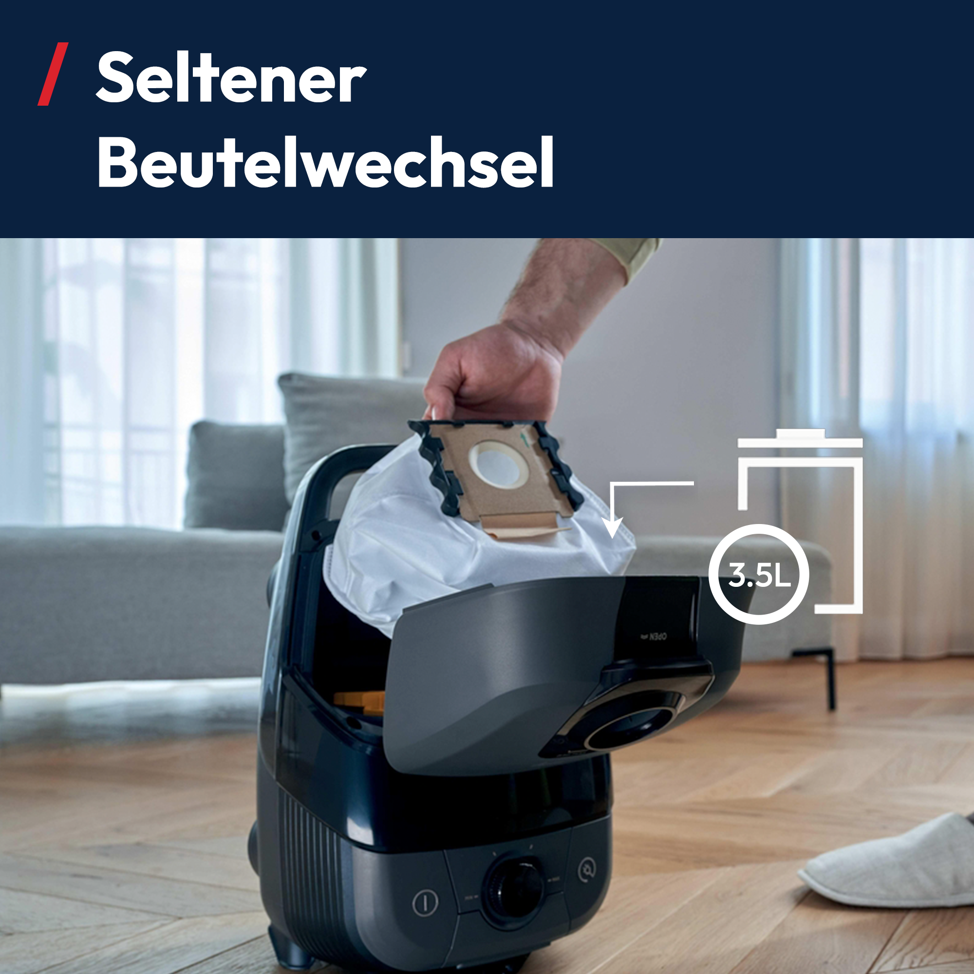 - EXTRA GROSSES 3,5L FASSUNGSVERMÖGEN: Weniger Unterbrechungen dank des großen Beutelvolumens und eines hygienischen Entsorgungssystems für minimalen Staubkontakt.