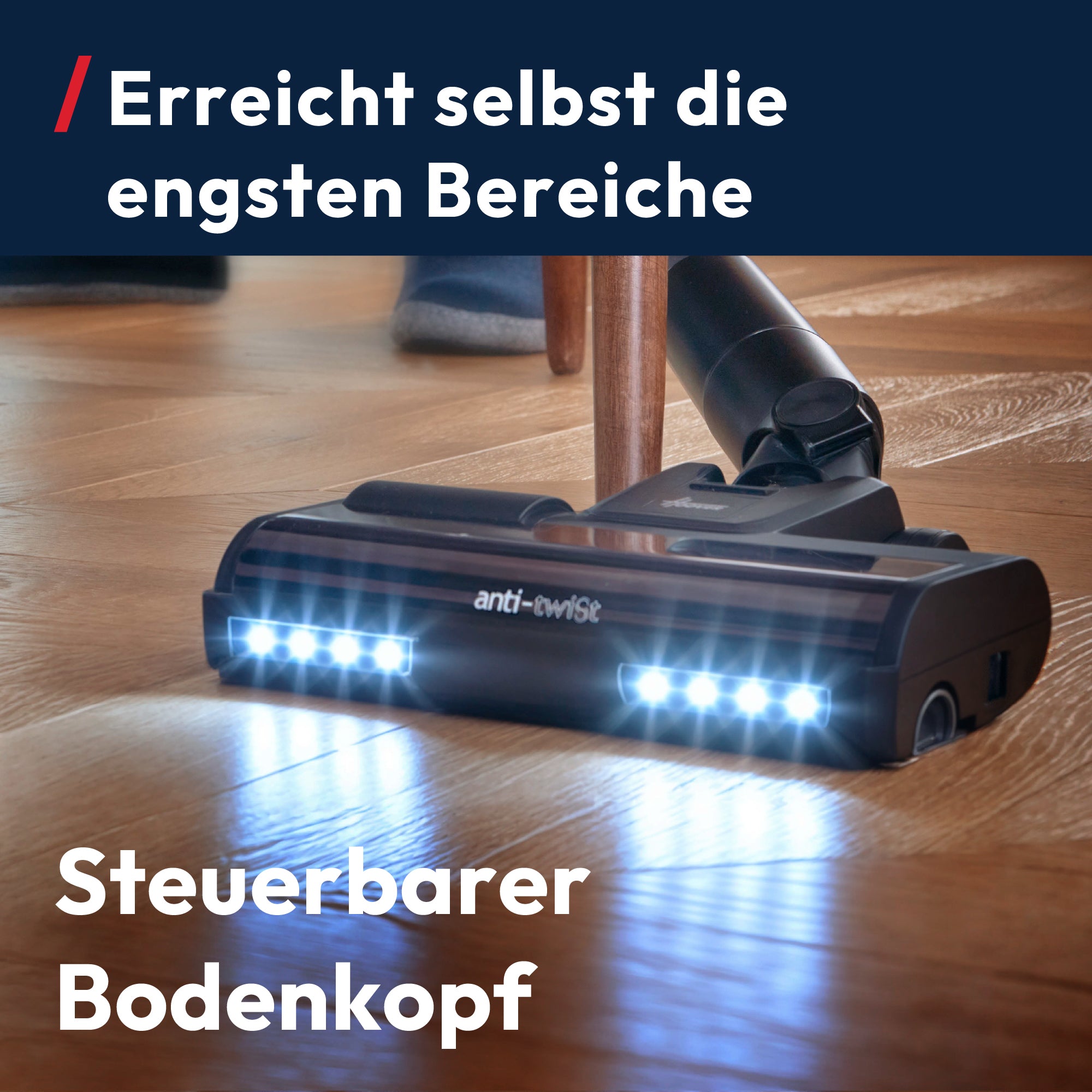 - MÜHELOSES MANÖVRIEREN: Drehe, wende und steuere Deinen Akkustaubsauger ganz flexibel – für eine mühelose Reinigung selbst in schwer zugänglichen Bereichen.