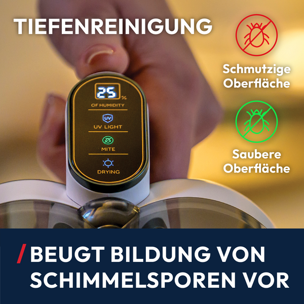 • 4-IN-1 FUNKTIONEN: Beat&Roll, Staubsaugen, UV-C-Licht, Trocknen: zur Tiefenreinigung von Matratzen, Sofas und Polstern.