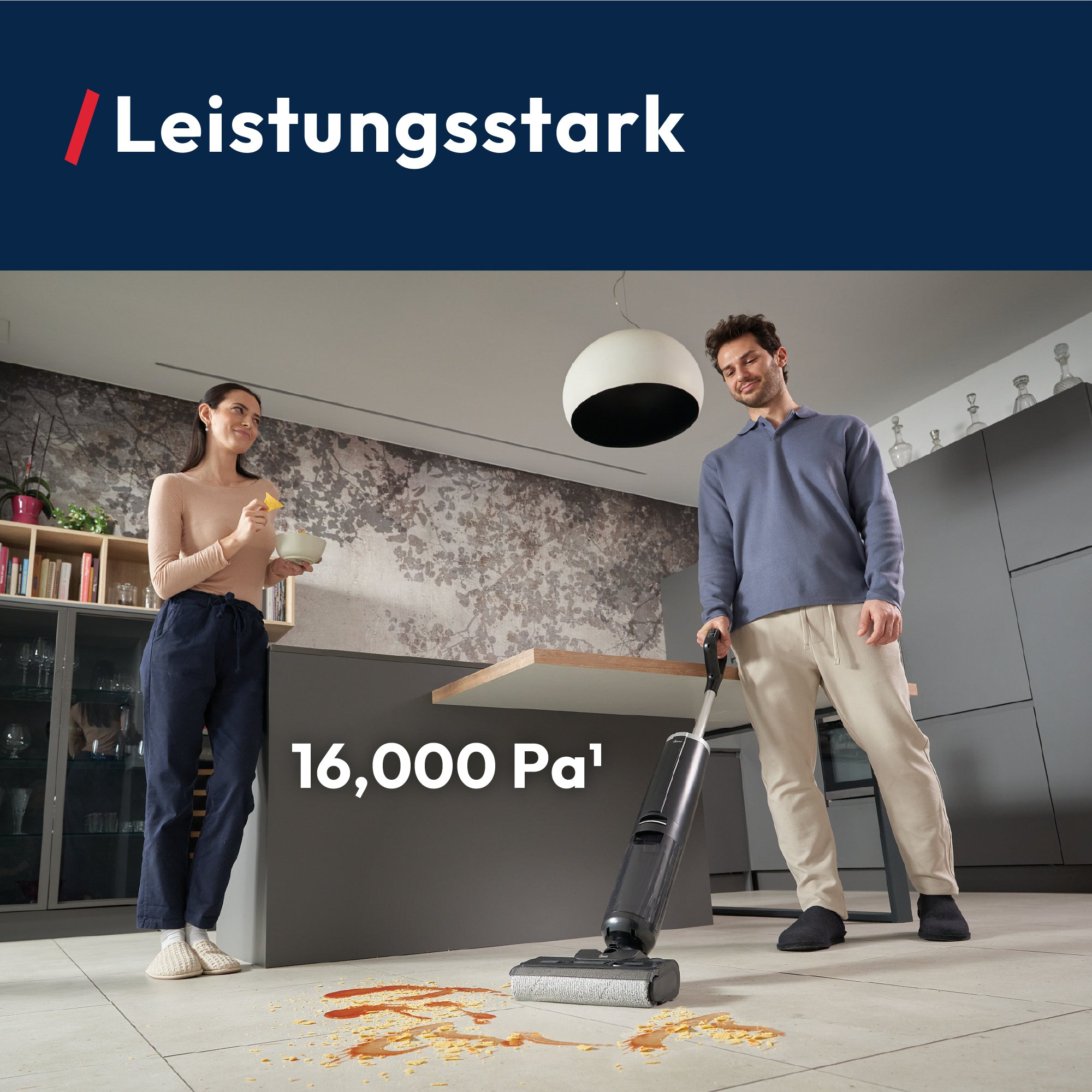 - LEISTUNGSSTARKE REINIGUNG: 16.000 Pascal¹ starke Saugkraft für effektives Trocken- und Nassreinigen in einem Durchgang.