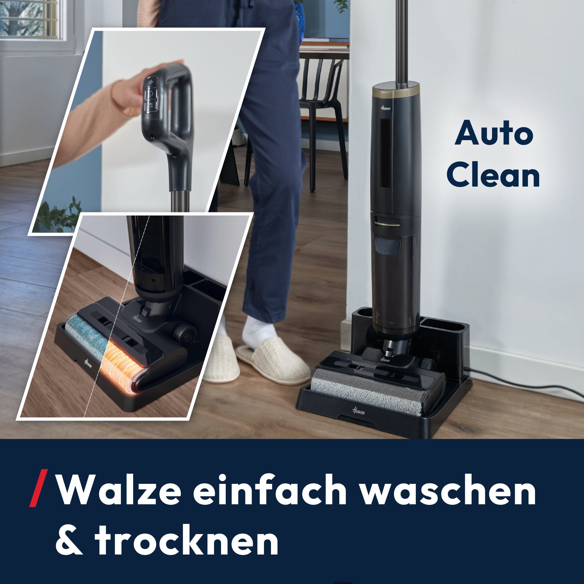 - HYGIENISCH UND PFLEGELEICHT: Dieser Bodenreiniger wurde für eine schnelle und einfache Wartung entwickelt – dank Anti-Haar-Verwicklung, automatischer Reinigungsfunktion und 45°C Heißluftbelüftungssystem, das die Walze automatisch reinigt und trocknet.