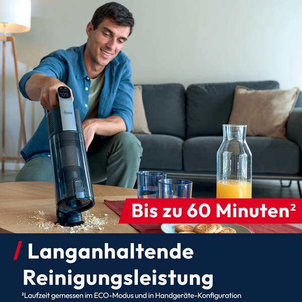 ²Saugleistung AW gemessen gemäß IEC62885-4:2020 im Turbo-Modus, Handgerät-Konfiguration.