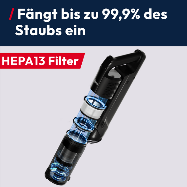- HEPA 13-FILTER: Das mehrschichtige Filtersystem dieses Staubsaugers hält bis zu 99,9 % des Staubs zurück.