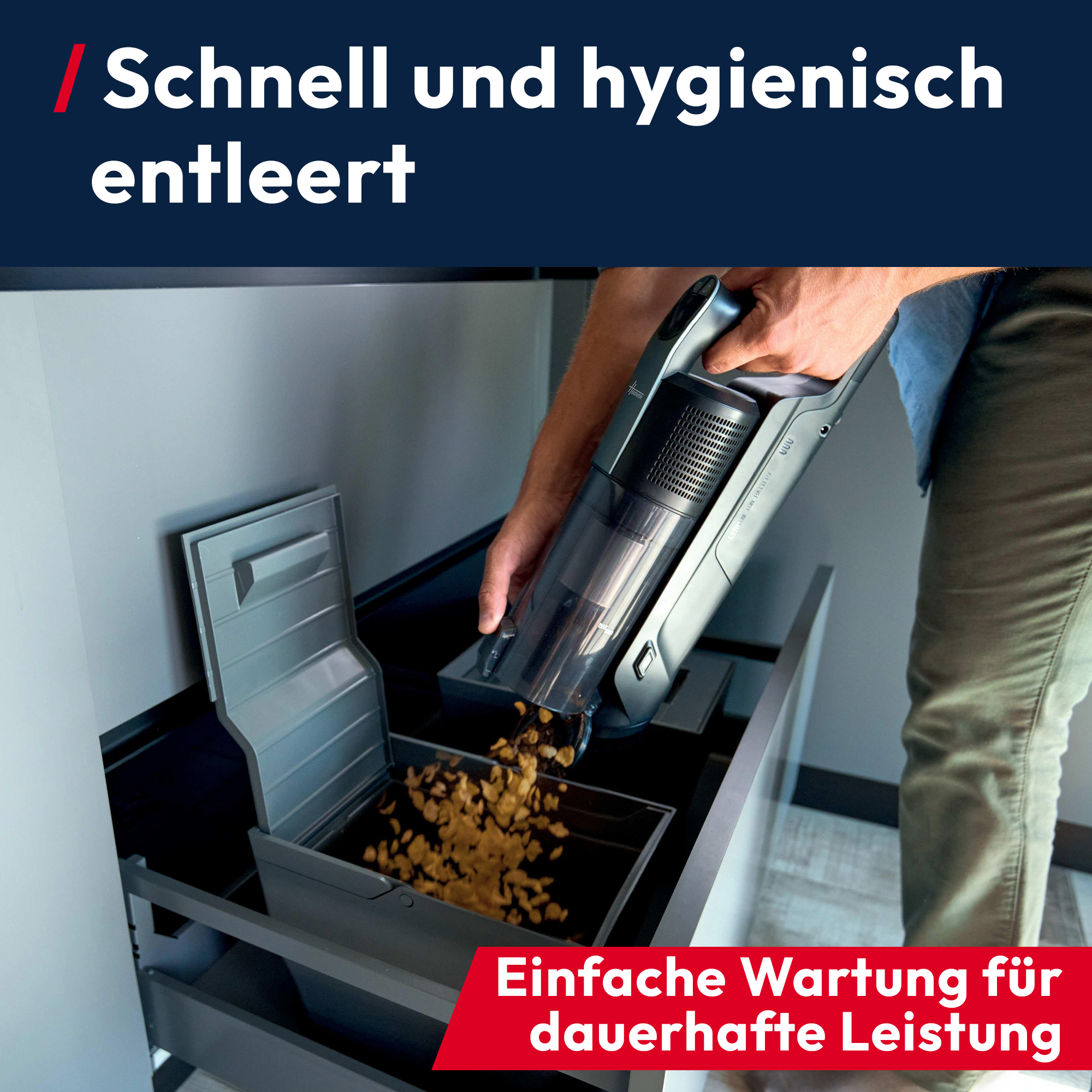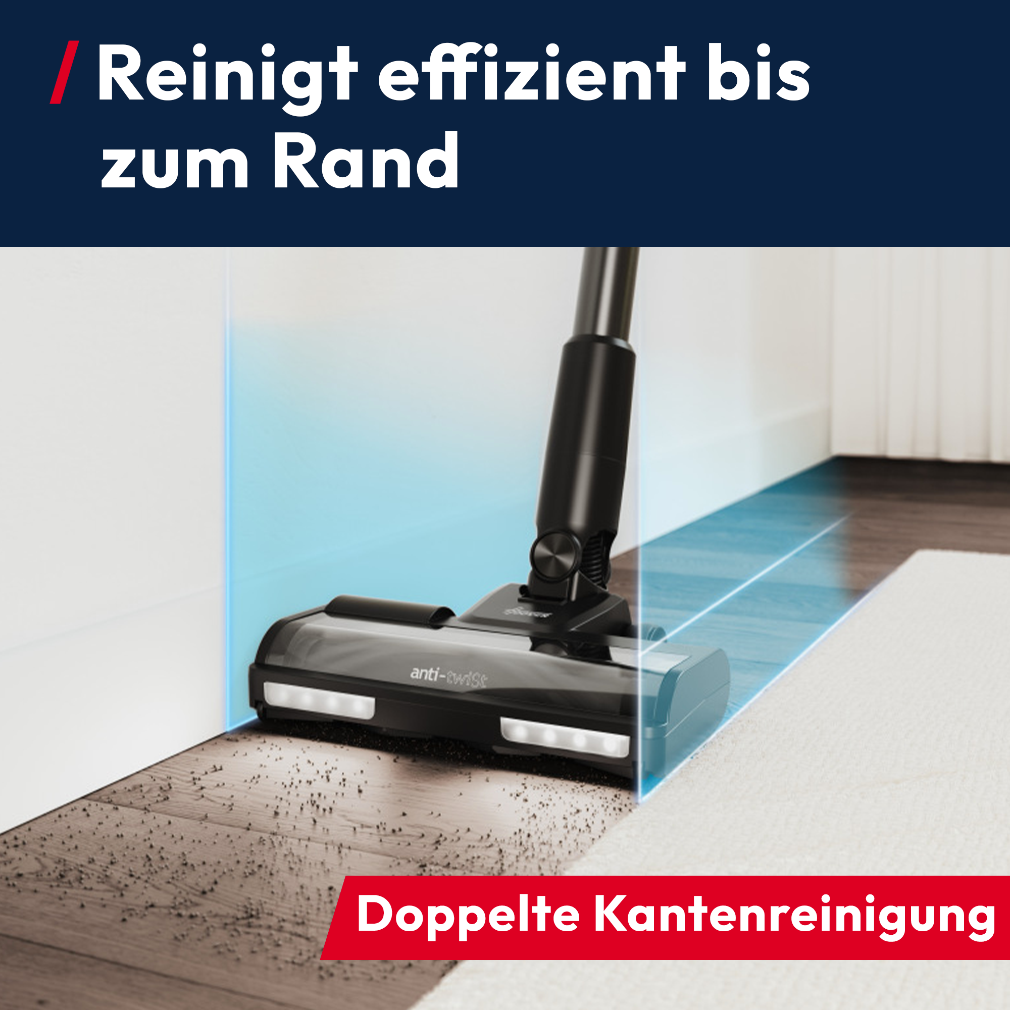 - PERFEKT FÜR KANTEN UND ECKEN⁴: Dieser Akku-Staubsauger nimmt Staub zuverlässig von beiden Seiten der Bodendüse auf - ideal für Kanten, Ecken und Fußleisten.
